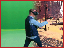 استند واقعیت مجازی متشکل از عینک VR ، سیستم کامپیوتری پیشرفته ، کیوسک کنترل و حلقه نگهدارنده (کف متحرک) می باشد. این محصول به دلیل حداقل فضای مورد نیاز، قابل استفاده در مکان های مختلف مانند مراکز خرید، شهربازی، هتل و غیره می باشد.
